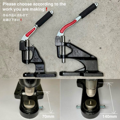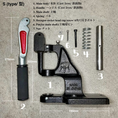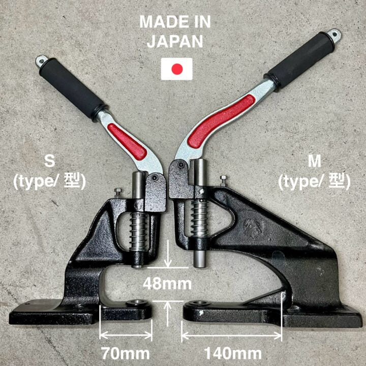 Upgrade your leather-craft workflow with the Hand Press Machine from OKA Factory — a precision-built, 100 % Japan-made press tailored for metal fittings. It keeps rivets and other fasteners true and vertical, eliminating shifting and misfires common with cheaper overseas tools. Its compact ≈ 3 kg, 70 mm (s) or 140mm depth (m) - suits your bench, studio or mobile setup — and the cast-iron body and simple lever action mean quiet, consistent results even during late-night production. For leather crafters and event gear makers who demand reliability, this press doesn’t just meet expectations—it raises the bar.