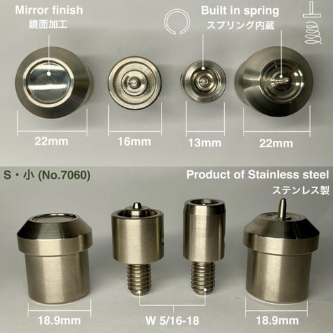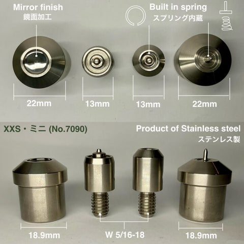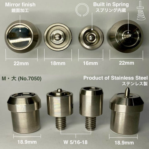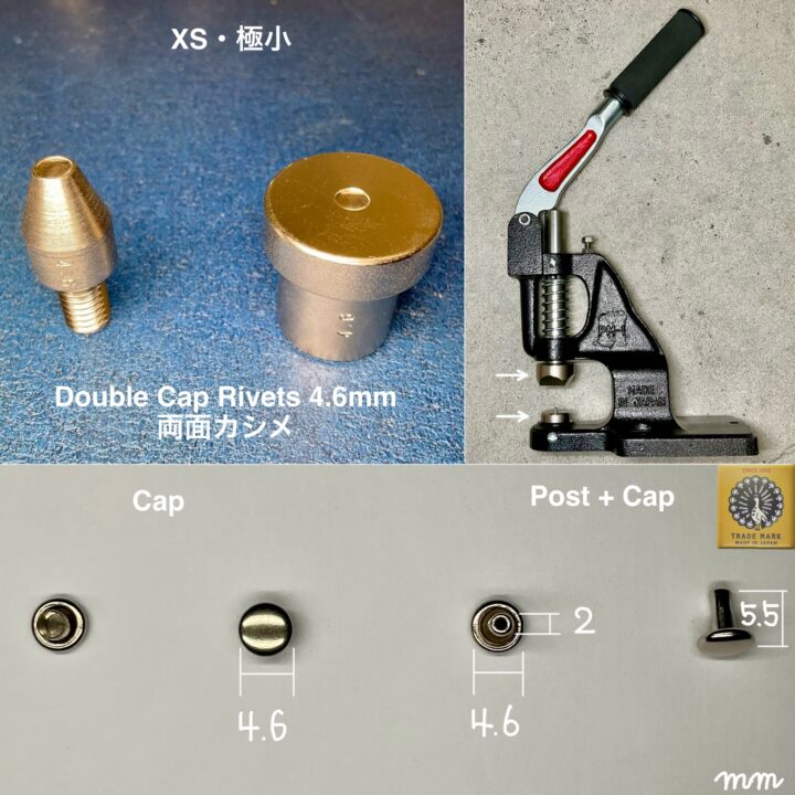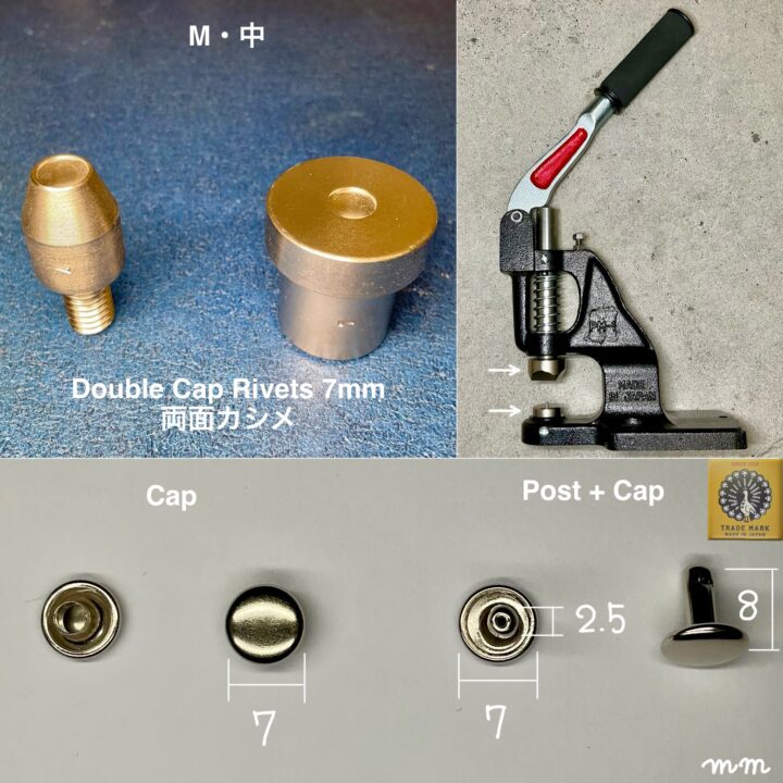 Double cap rivet dies are a set of two. These correspond with the Peacock double cap rivets in Large, Medium and XX Small
