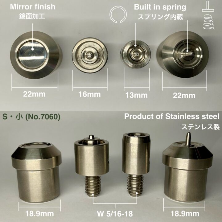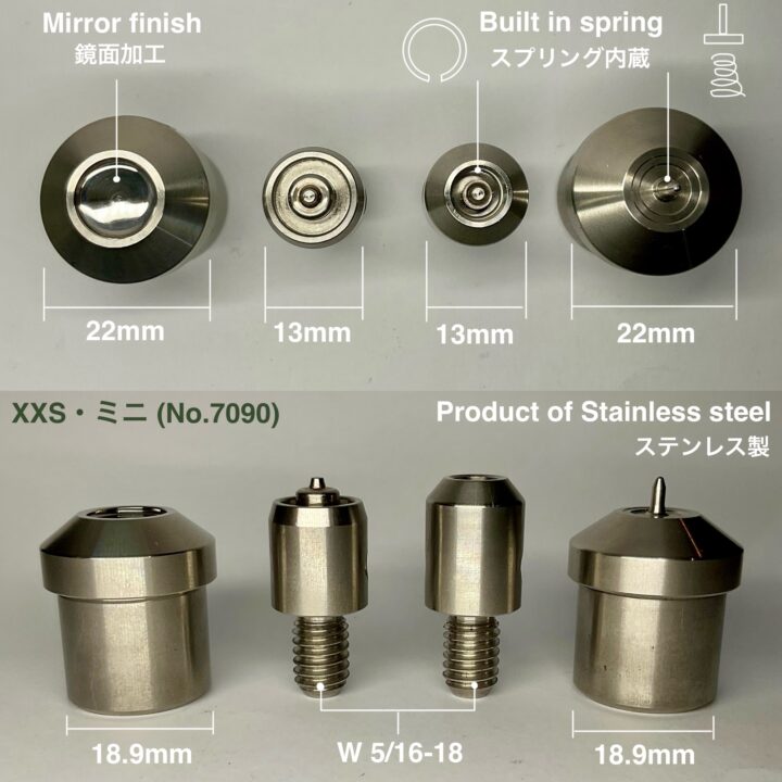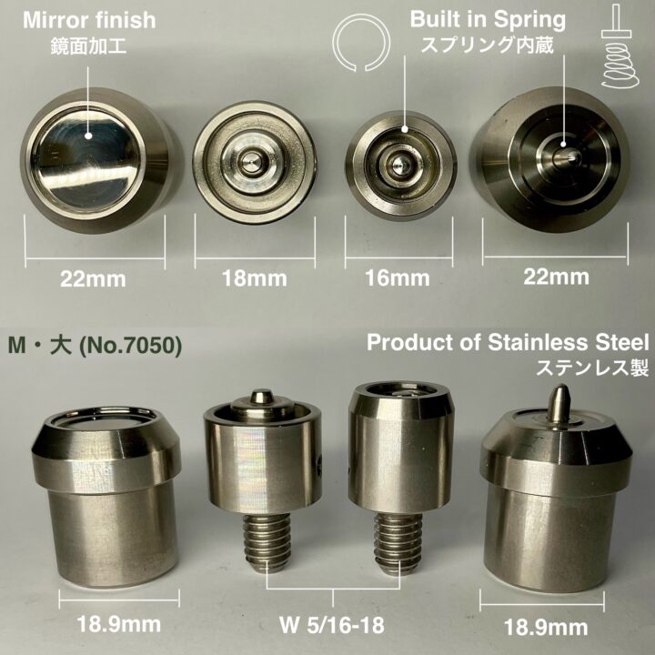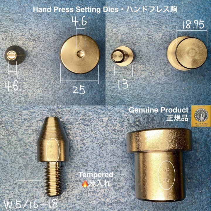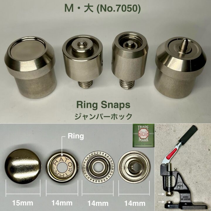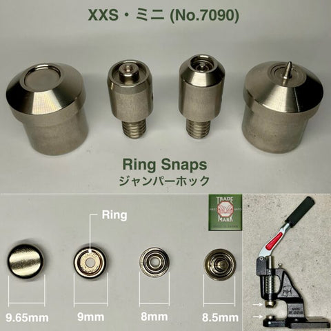 Ring snap dies are a set of four. These correspond with the Hasi Hato Medium, Small and XX Small durable dot ring snaps.